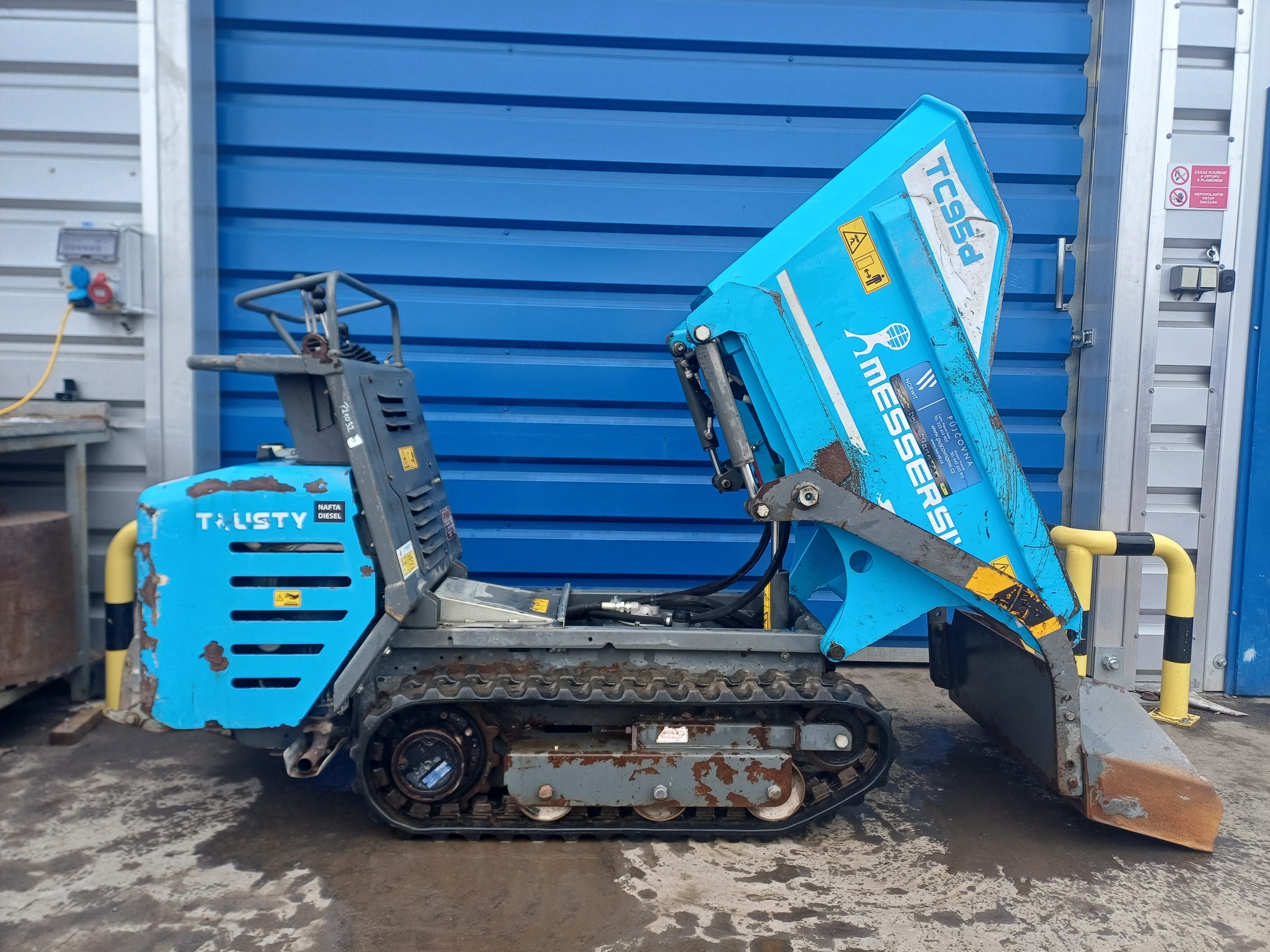 Pásový minidumper Messersi T120d s naftovým motorem z naší půjčovny v Pískové Lhotě, pravidelně servisovaný servisem Norwit.