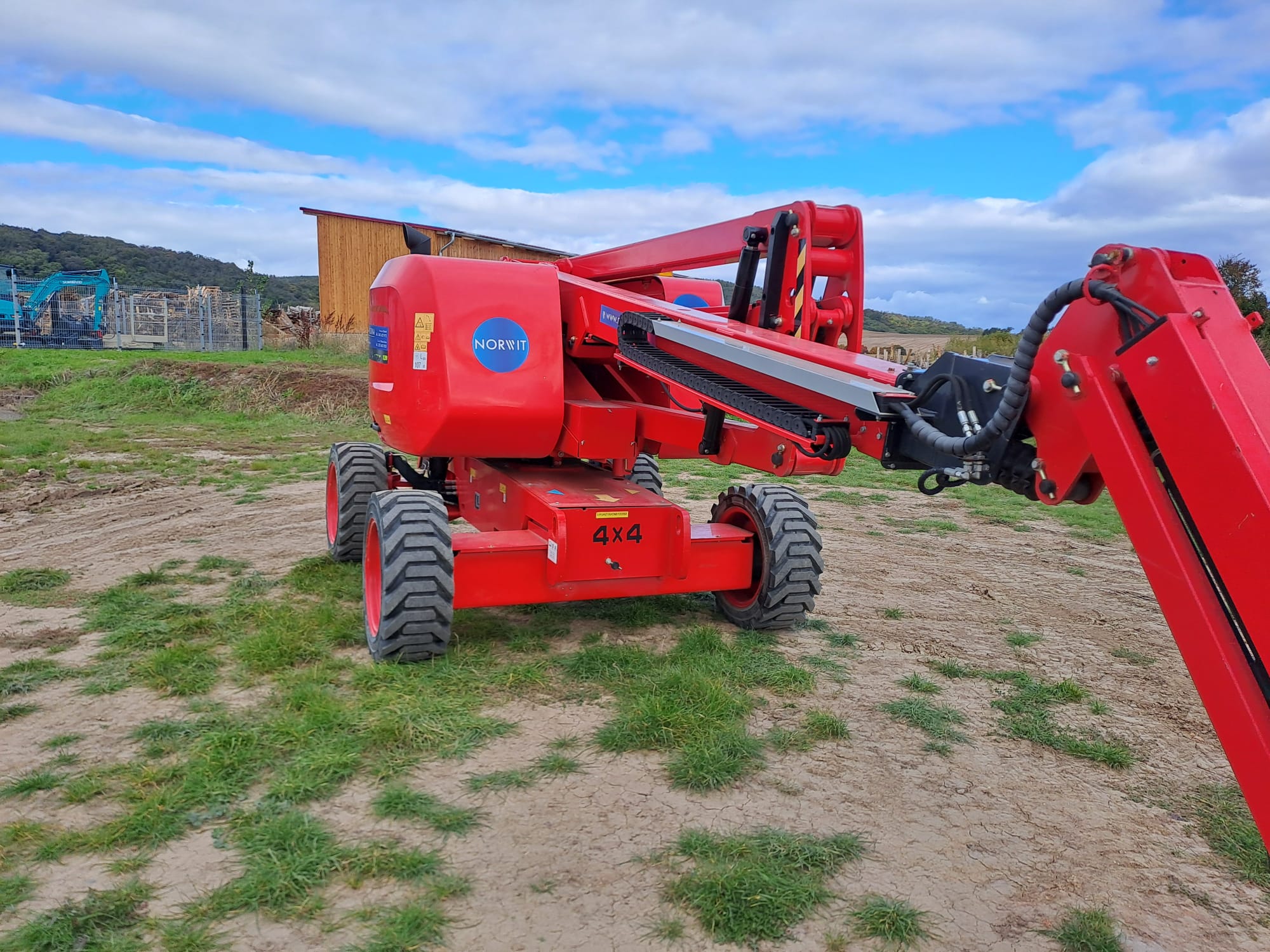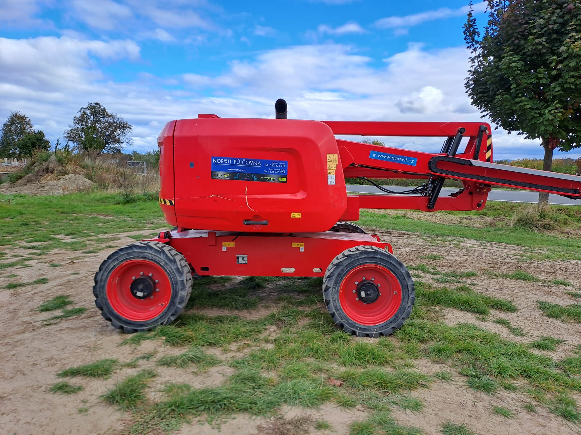Naftová kloubová pracovní plošina LGMG AR16J z naší půjčovny v Pustiměři, pravidelně servisované servisem Norwit.