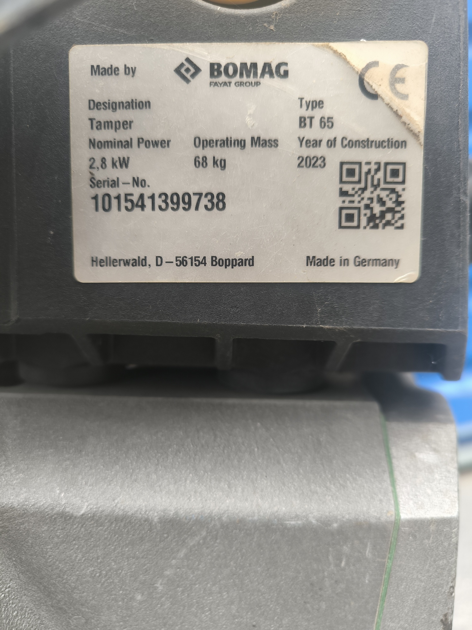 Vibrační pěch Bomag BT65 z naší půjčovny v Pískové Lhotě, pravidelně servisovaný servisem Norwit.